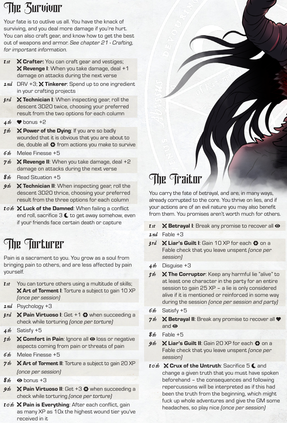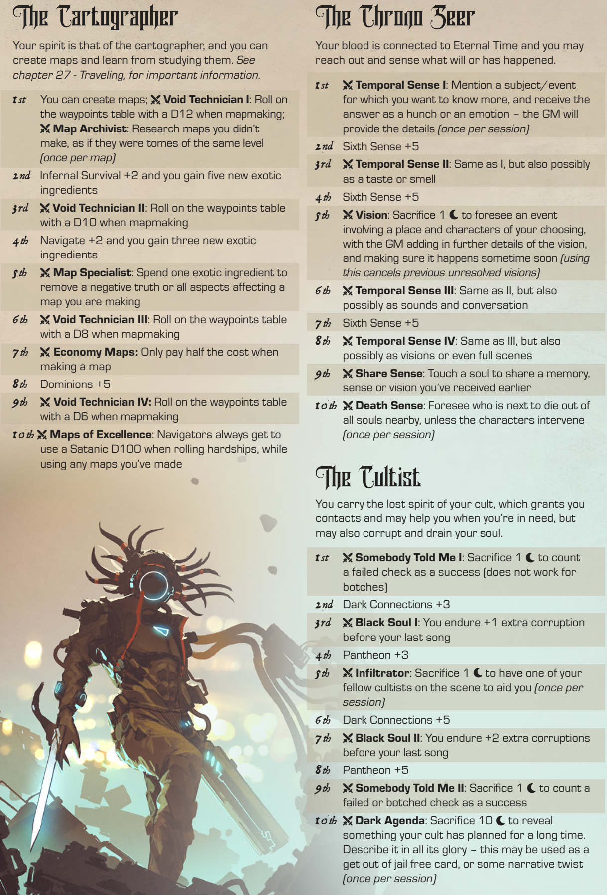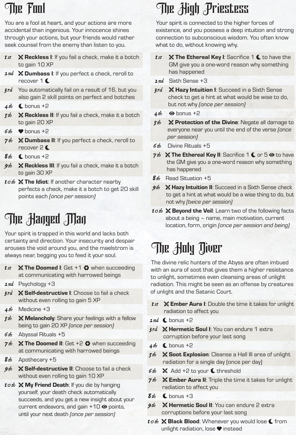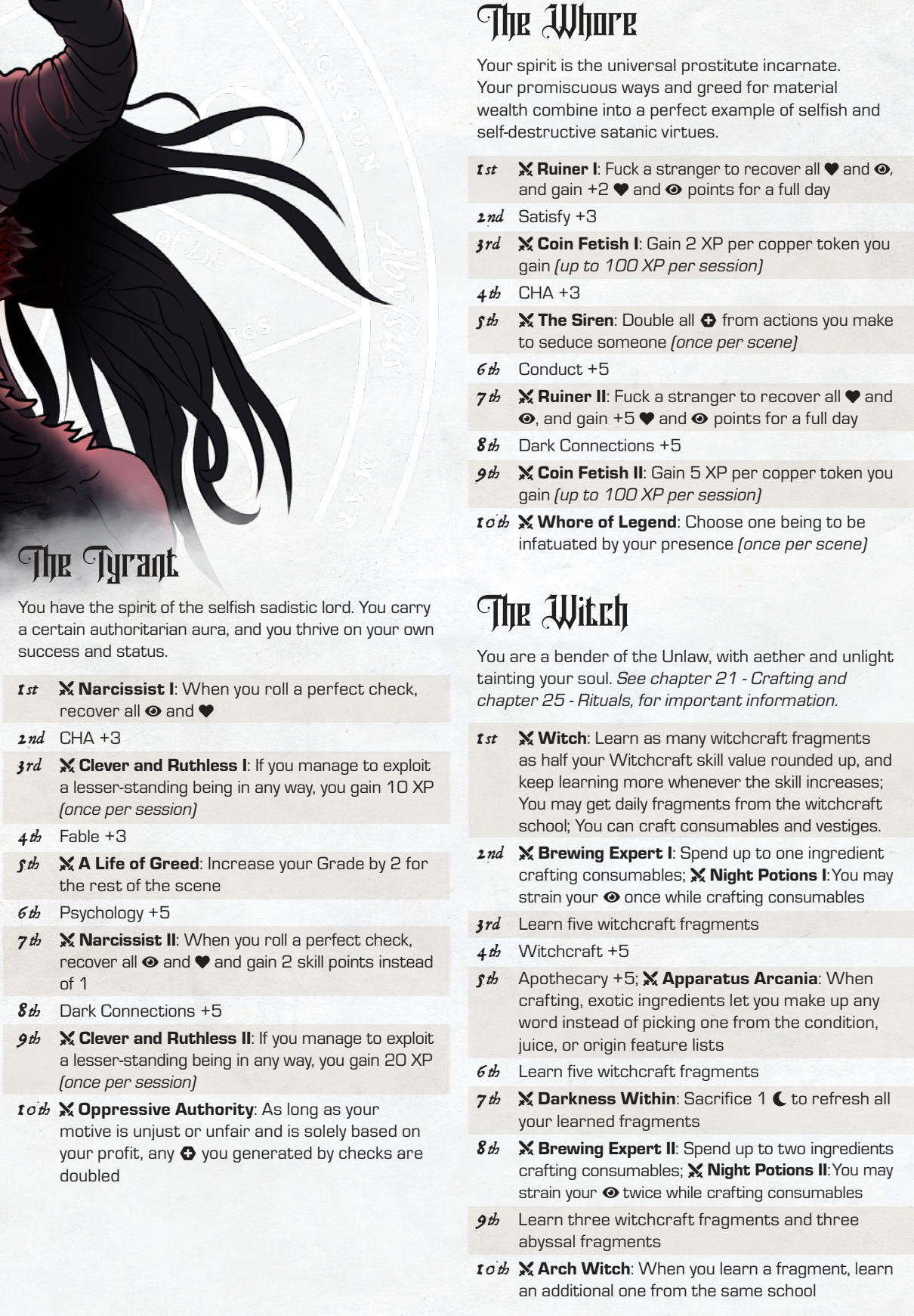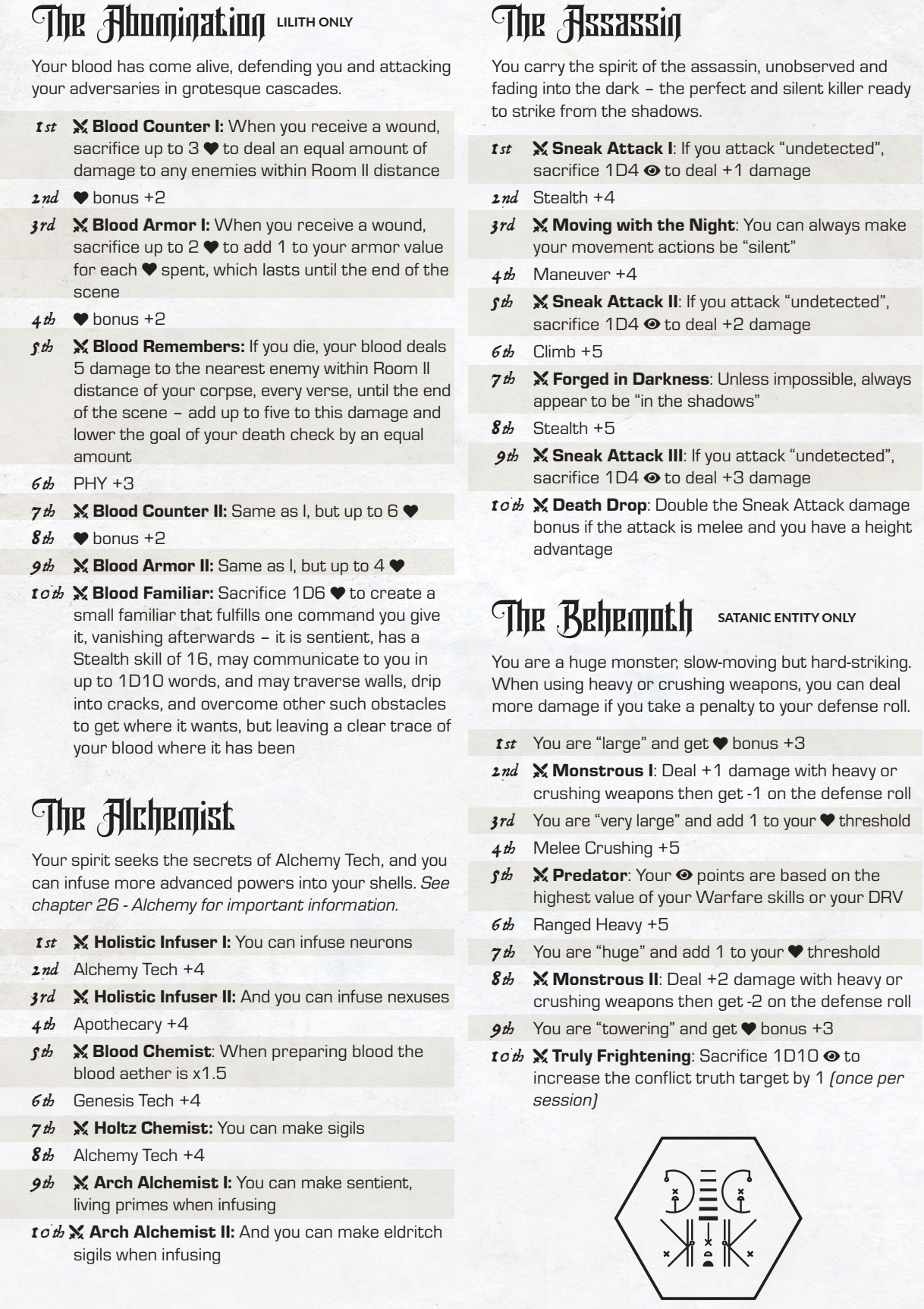 You create your character with one dark mark at 1st rank, and gain a rank in a dark mark of your choice when you receive a blessing from your master, (see Audiences). You can have three dark marks at most, and each can go up to 10th rank. Keep in mind that some dark marks are only available to certain forms, as indicated beside their titles.