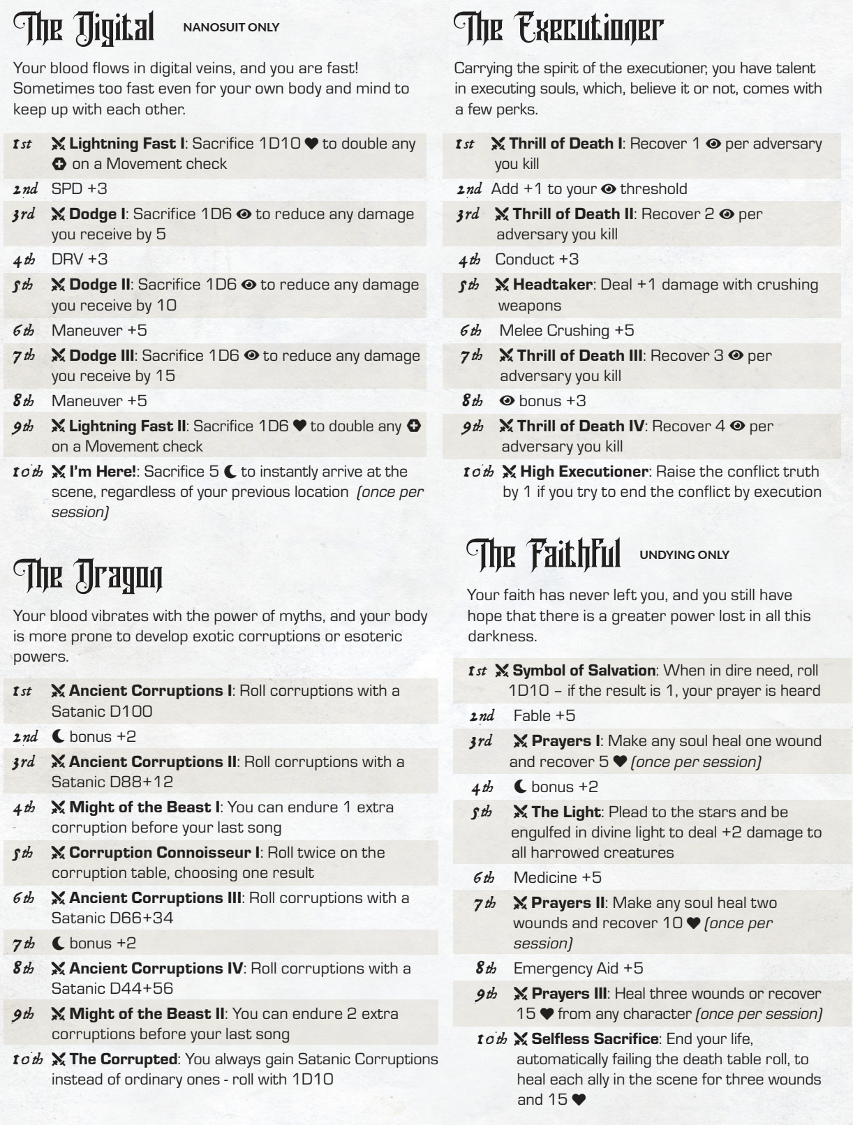 Each rank in a dark mark gives you either a feature or a bonus. Features, indicated by [FEAT] and a Roman numeral, are replaced by their higher versions once you get them. Remember that using features is always optional, so you may choose not to use them in certain circumstances.