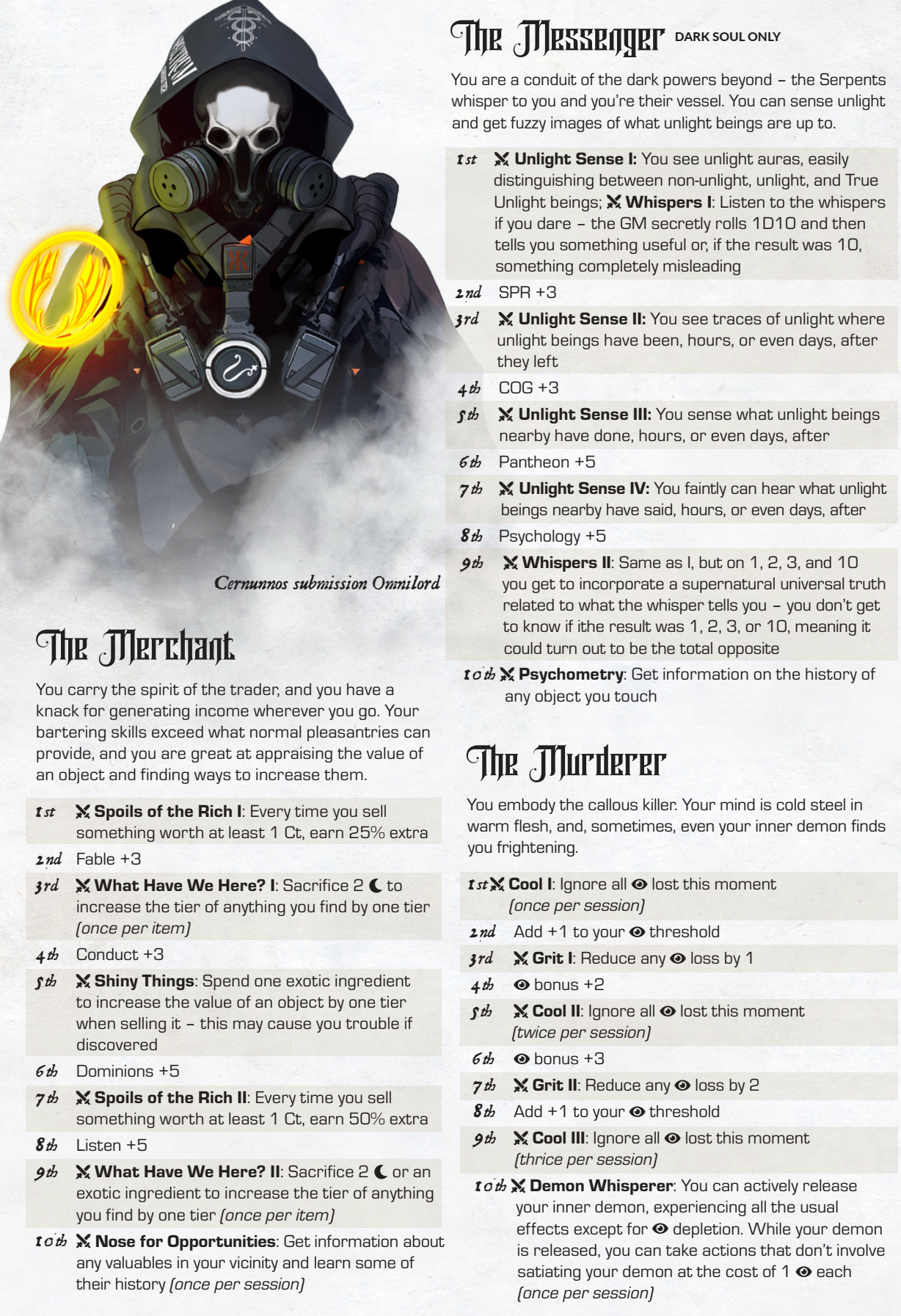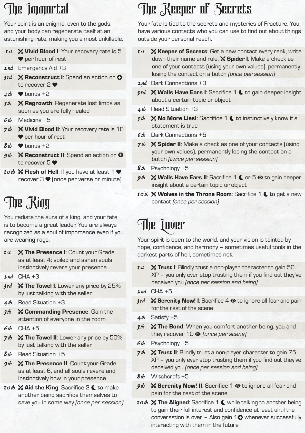 Willingly or subconsciously given to you by your master, your dark marks are part of your fate – if you carry the dark mark of the King, you are meant to become one. But fate is fickle, and souls carve their own destinies, which means that you may take a different path than that which your master had planned for you. Your dark marks are often invisible to others, and sometimes even to yourself. Some entities, however, can sense them, discerning what path is laid before you and even deduce what master is behind the mark.